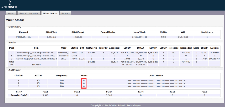 Lưu ý: Nếu nhiều hashboard có nhiệt độ vượt quá 80 độ, hãy bổ sung thêm các thiết bị làm mát. Máy đào rất dễ bị lỗi trong quá trình hoạt động ở môi trường nhiệt độ cao.