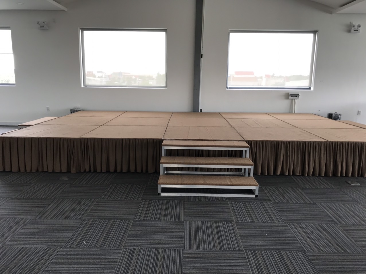- Chiều cao sân khấu được tùy chính theo mặt bằng hội trường giúp đơn giản, hiệu quả tầm nhìn